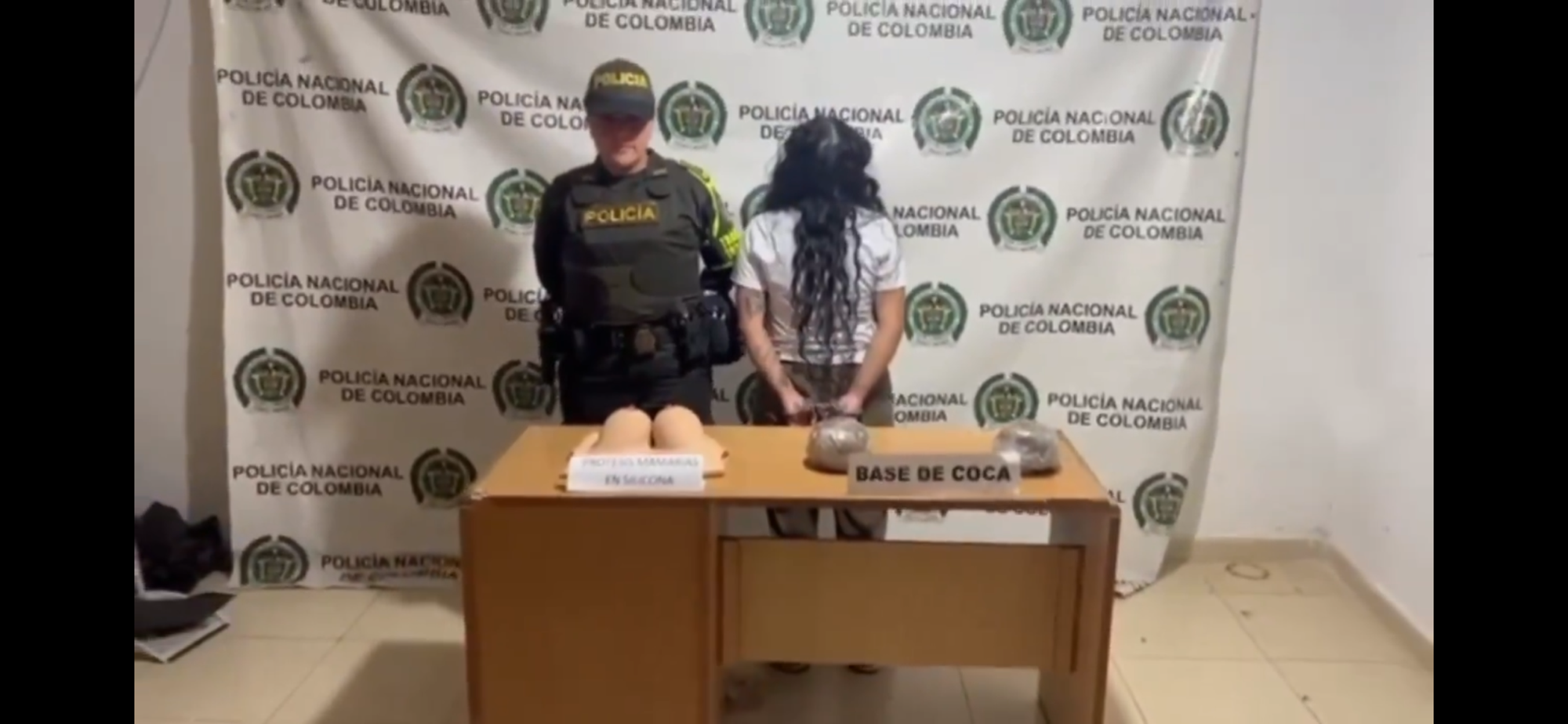Según explicó la general Sandra Liliana Rodríguez, durante la verificación a los pasajeros se detectó una irregularidad en la contextura de una de las viajeras, lo que llevó a una revisión más detallada. En ese momento, los agentes hallaron que llevaba adheridos unos falsos implantes en cuyo interior se encontraban varios paquetes del estupefaciente.