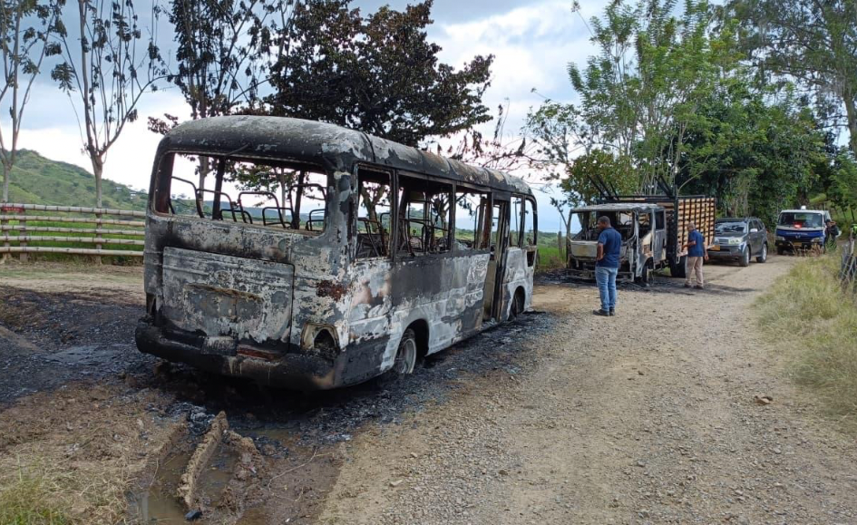 La Policía Nacional de Colombia confirmó que el 22 de abril, hacia la 1:20 p. m., fueron incinerados un bus y un camión tipo NPR en la vía al sector El Picacho, zona rural de Tuluá, además del hurto de una camioneta.