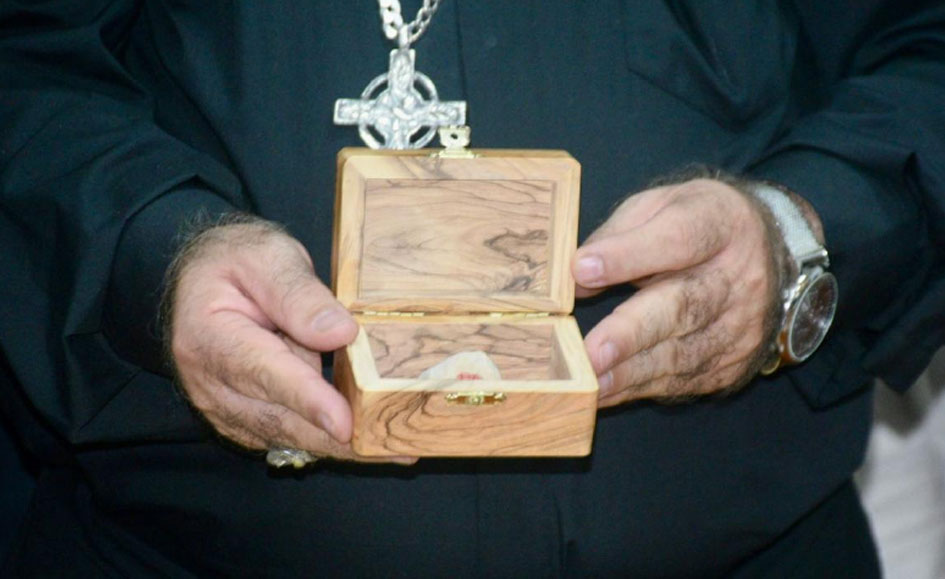 Durante la ceremonia se presentó una piedra traída desde la orilla del Lago de Galilea, recolectada en abril de 2025, la cual fue integrada simbólicamente como base del santuario. Este elemento fue destacado como un signo de conexión espiritual con los lugares donde, según la tradición cristiana, caminó Jesús.